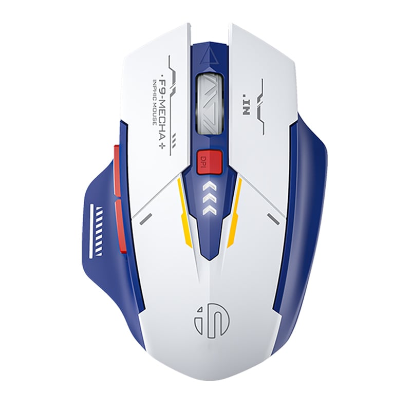 Chuột gaming INPHIC F9 Gundam Chính Hãng | Wireless, 2400 DPI, 90g, Trắng Xanh