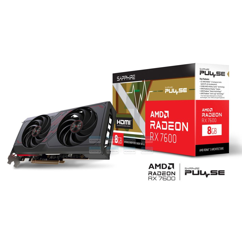 Card màn hình AMD Radeon RX 7600 SAPPHIRE PULSE OC | 8GB GDDR6, 2048 SP, 550W