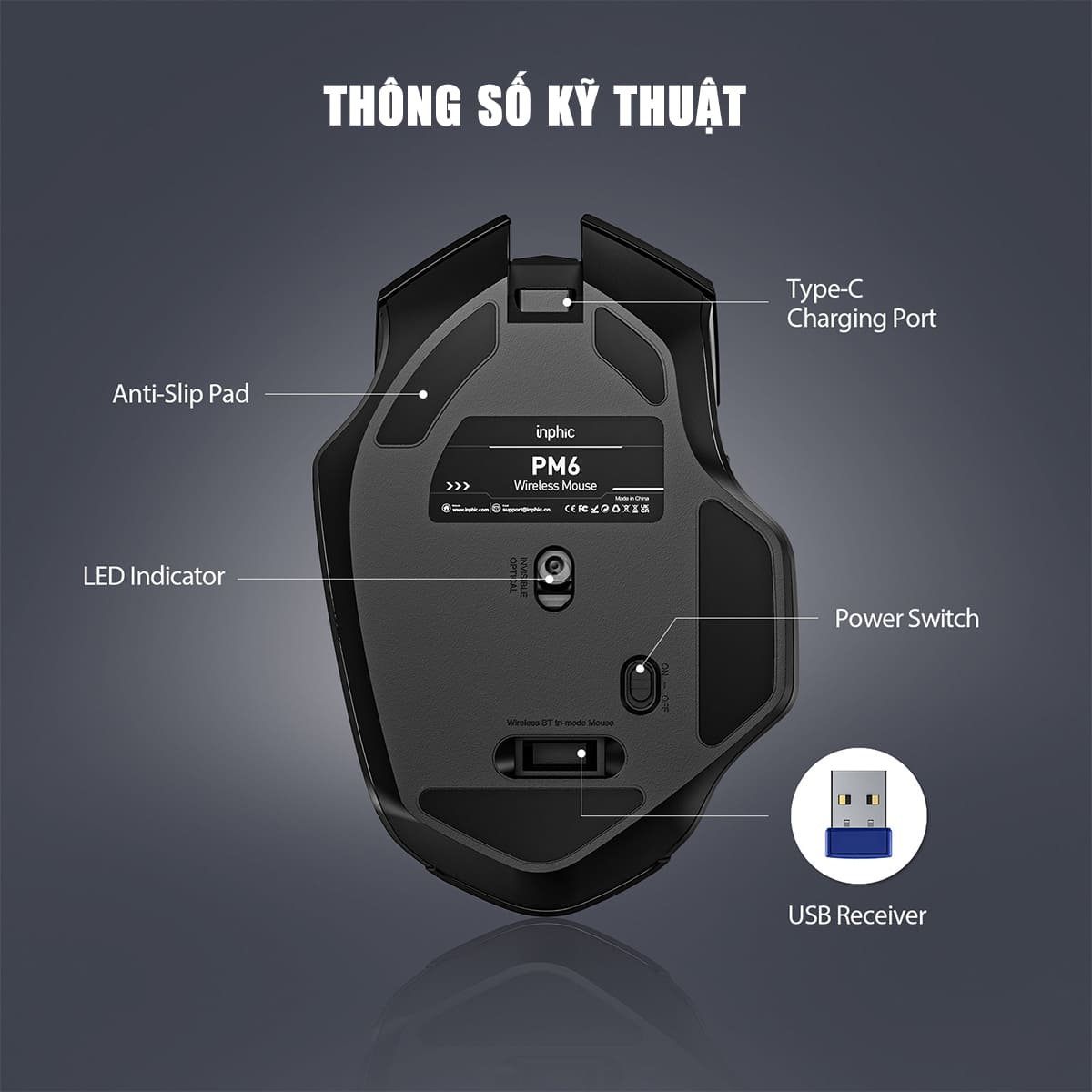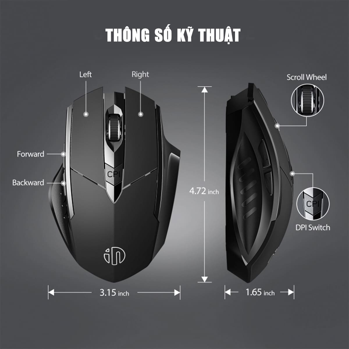 Thông tin chung - Tên sản phẩm: CHUỘT KHÔNG DÂY INPHIC F1S SILENT / ĐEN / BH 12T