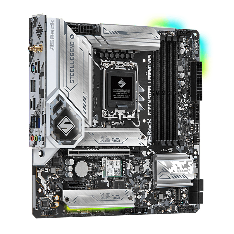 Không giống hầu hết cái gọi là tấm chắn I/O gắn sẵn chỉ được trang trí bằng cách phối màu lạ mắt. B760M Steel Legend Wifi có thiết kế thông minh có nhiều dung sai hơn và cho phép FE chắn IO có thể điều chỉnh được khi lắp đặt. Do đó, khung vỏ case sẽ vừa vặn một cách hoàn hảo mà không gặp bất kỳ một sự cố cơ học nào.