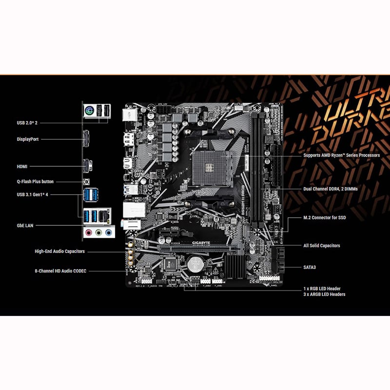 Gigabyte B550M H ARGB là mẫu mainboard thuộc phân khúc phổ thông nhưng vẫn được trang bị những tính năng quan trọng để đáp ứng nhu cầu build PC hiện đại, đặc biệt dành cho người dùng sử dụng nền tảng AMD Ryzen. Với chipset B550 cùng socket AM4, sản phẩm hỗ trợ nhiều thế hệ CPU từ Ryzen 3000 đến Ryzen 5000, mang lại sự linh hoạt khi lựa chọn cấu hình. Đây là lựa chọn phù hợp cho người dùng cần một bo mạch chủ ổn định, dễ sử dụng và có khả năng nâng cấp lâu dài.