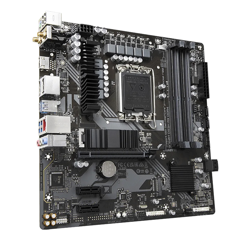 Gigabyte B760M DS3H AX DDR4 có thiết kế nhỏ gọn Micro-ATX, phù hợp với nhiều loại case máy tính. Bo mạch chủ được bố trí các thành phần hợp lý, giúp cho quá trình lắp đặt và nâng cấp dễ dàng.
