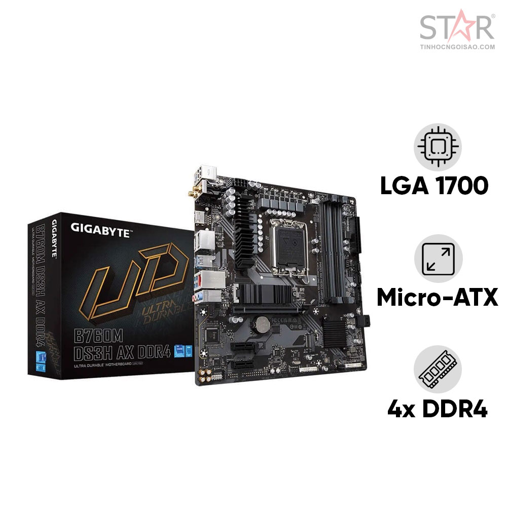 Mainboard Gigabyte B760M DS3H AX Wifi DDR4 | LGA 1700, mATX, 4 khe RAM