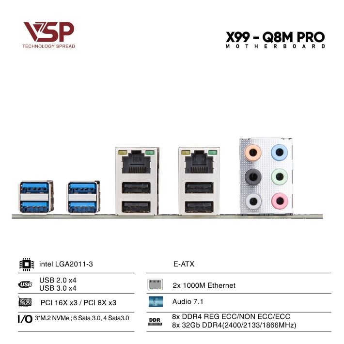 Tính năng nổi bật của Mainboard VSP X99 Q8M Pro