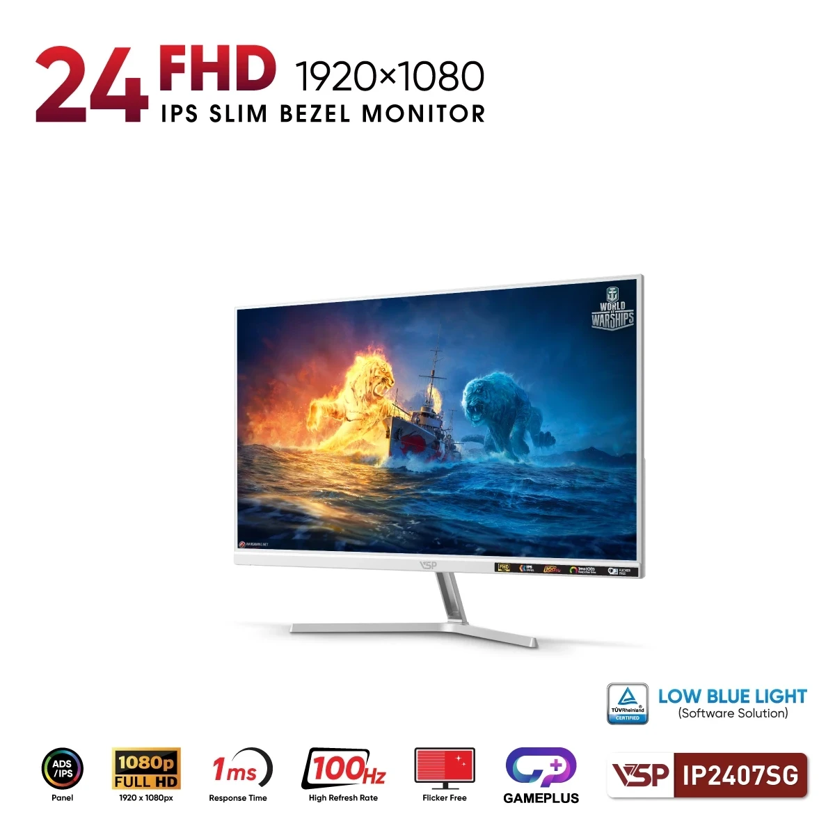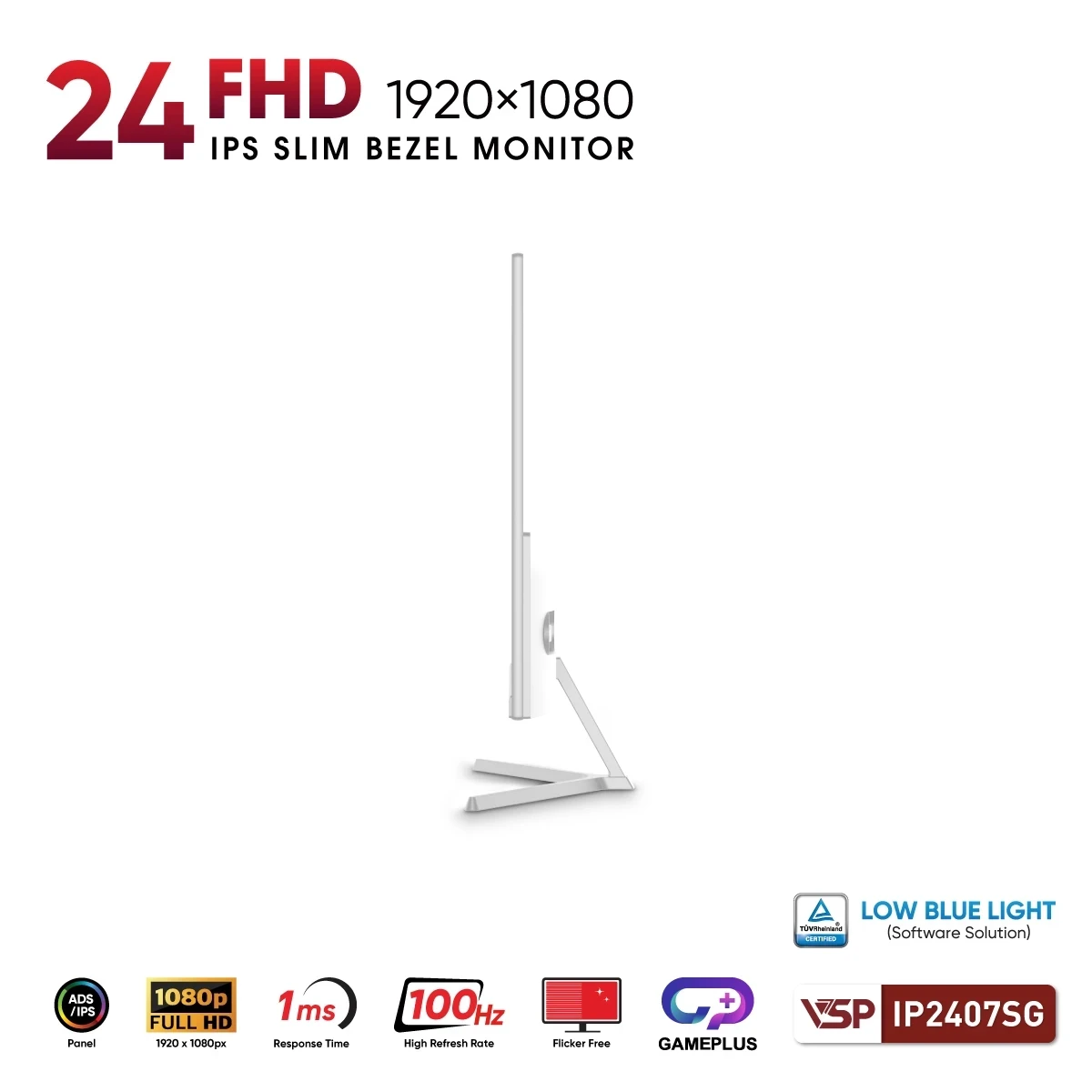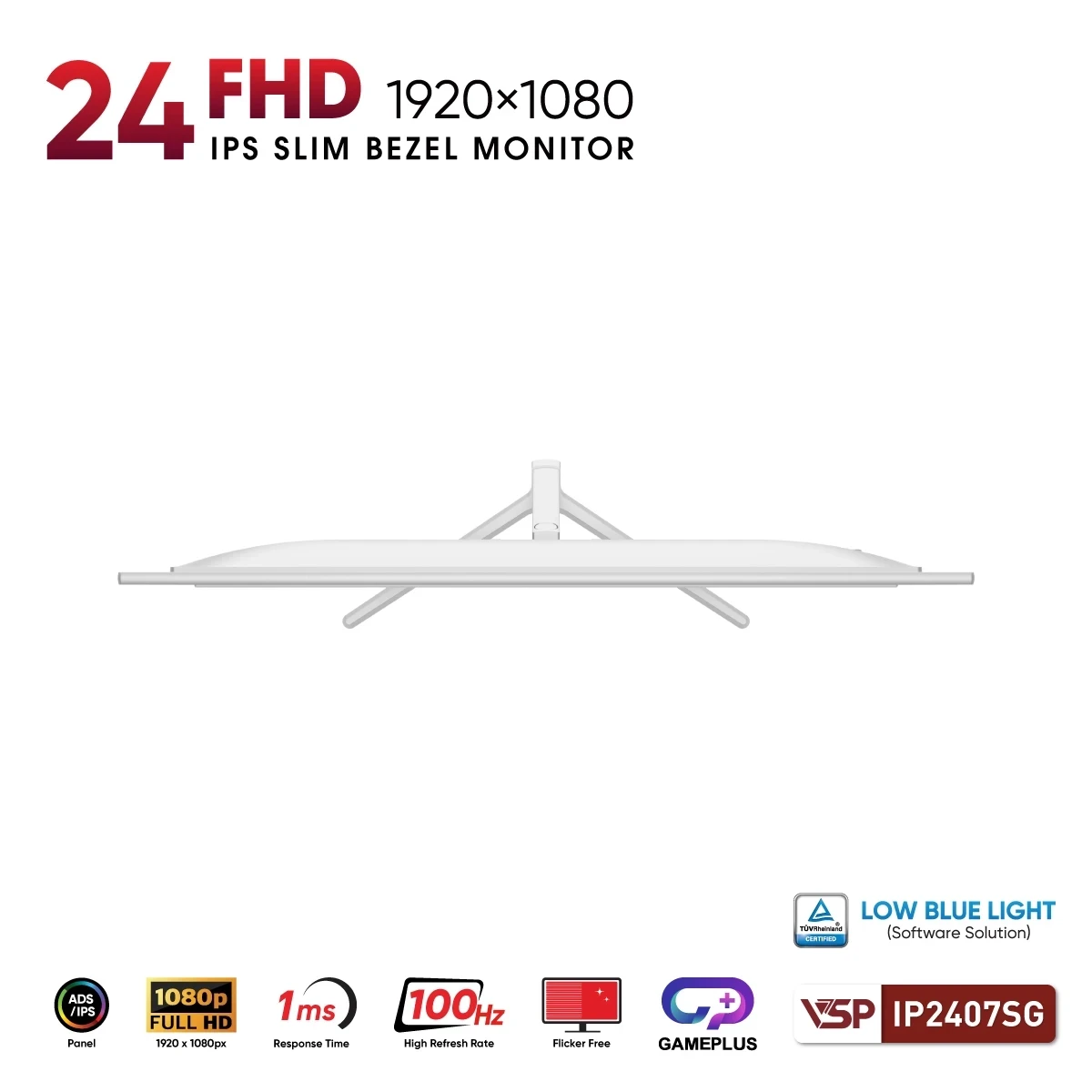 Màn hình VSP IP2407SG Trắng 24 inch FHD IPS 100Hz - Hiển thị rõ nét, thiết kế tinh gọn cho không gian làm việc hiện đại