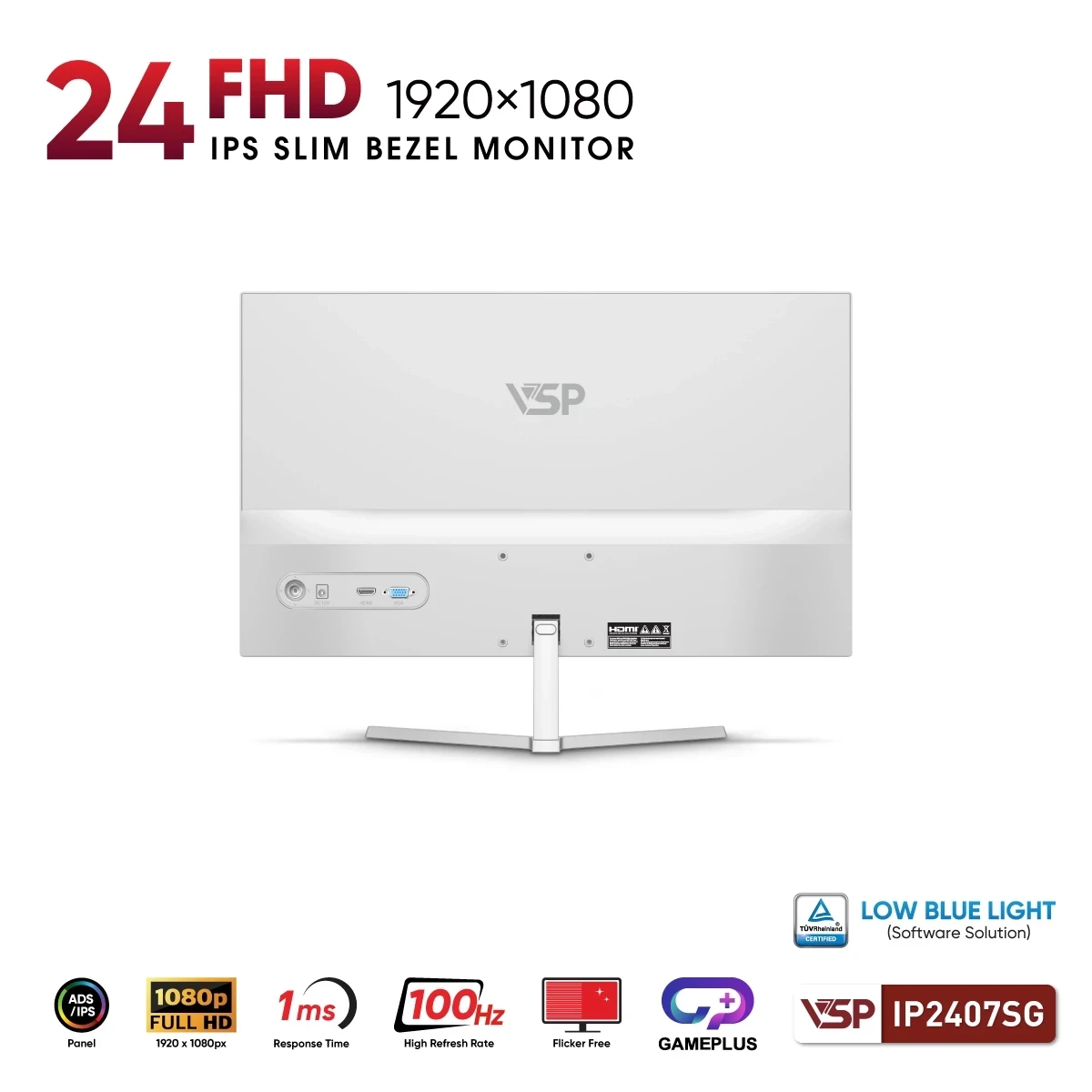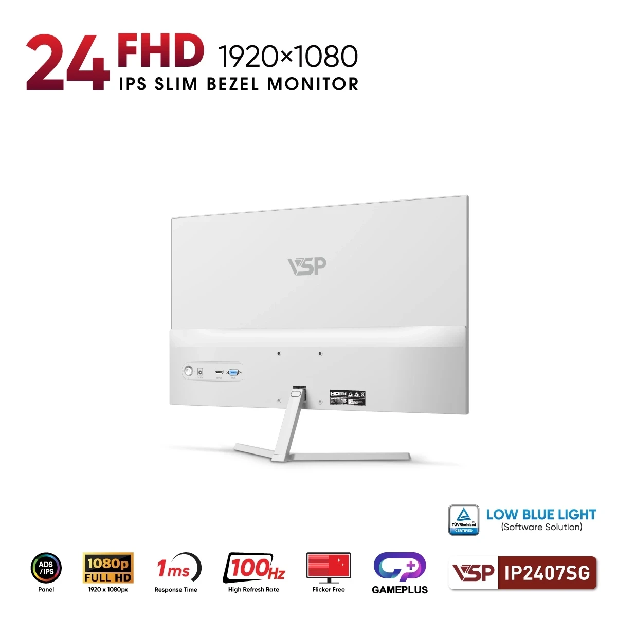 Màn hình VSP IP2407SG 24 inch FHD IPS 100Hz là lựa chọn phù hợp cho người dùng cần một thiết bị hiển thị ổn định, dễ sử dụng và có thiết kế sáng, gọn gàng. Sự kết hợp giữa IPS, 100Hz, 1ms và ngoại hình trắng hiện đại giúp sản phẩm đáp ứng tốt cả nhu cầu làm việc lẫn giải trí cơ bản.
