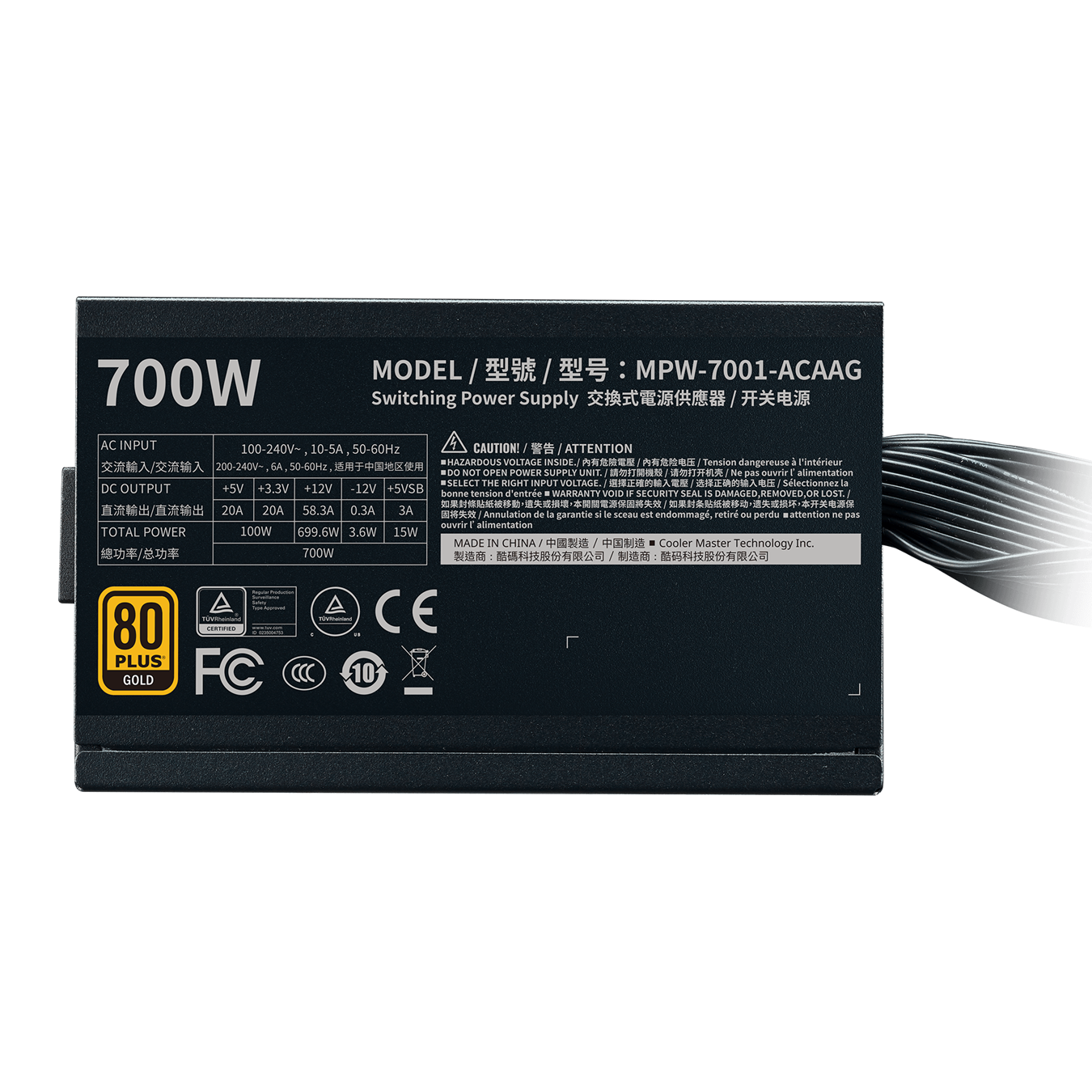 Nguồn máy tính CoolerMaster G700 Gold (Cáp Liền) (MPW-7001-ACAAG) | Non Modular, ATX