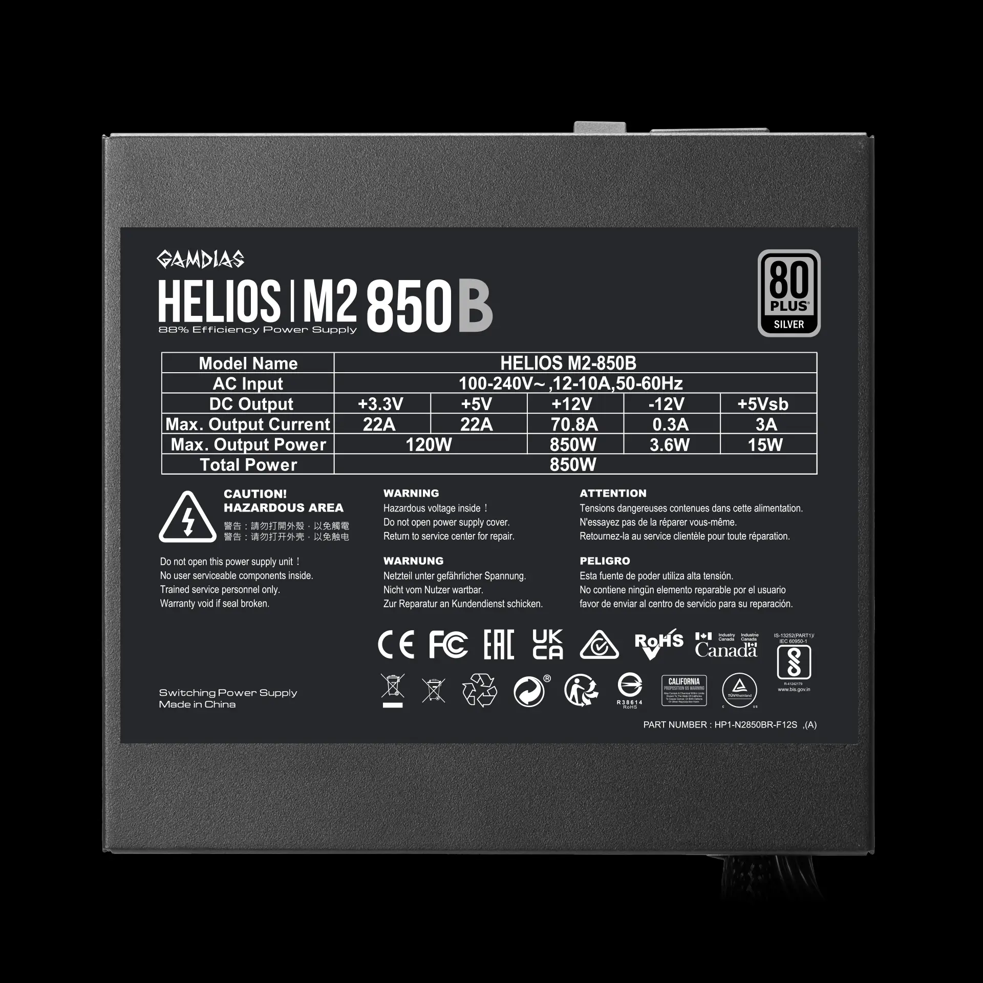 | Thông tin chung - Tên sản phẩm | NGUỒN GAMDIAS HELIOS M2-850B 850W 80PLUSSLIVER PCIE5.1 / BH 36T - ĐEN |