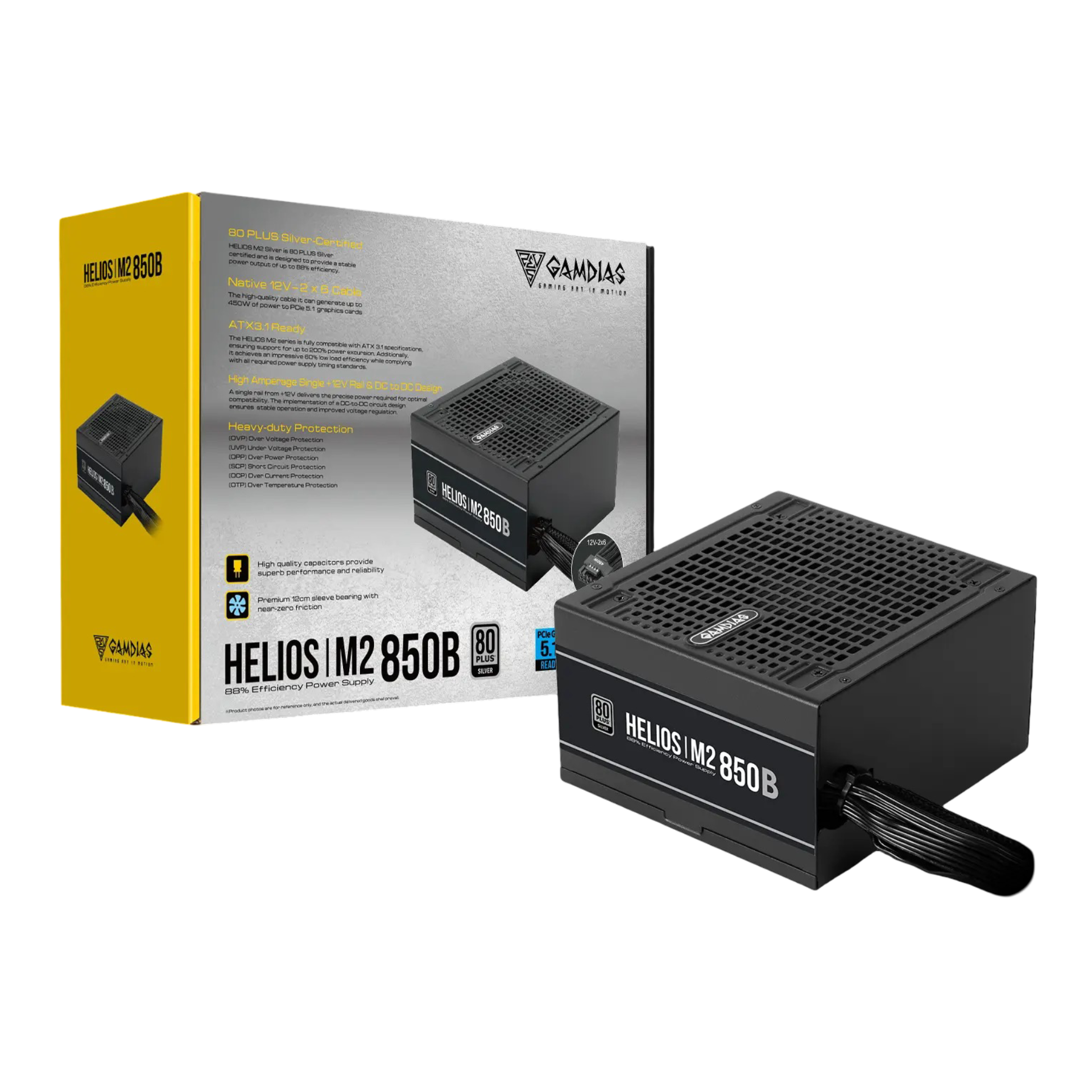 Nguồn máy tính Gamdias HELIOS M2-850B 850W 80 Plus Silver | Non Modular, ATX 3.1, PCIe 5.1, Đen