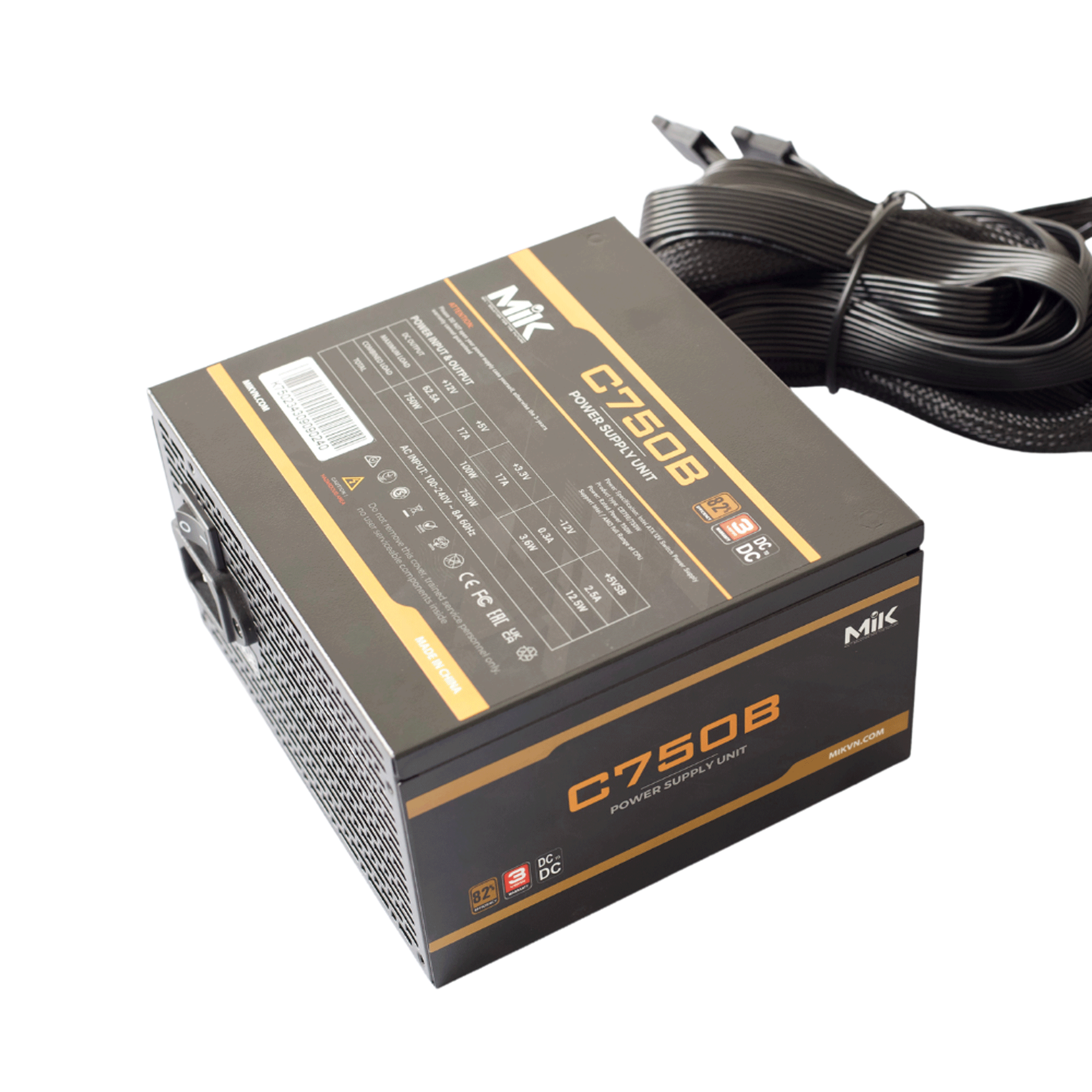 Nguồn máy tính Mik C750B (Hiệu Suất 87%) (Dc To Dc) - Đen