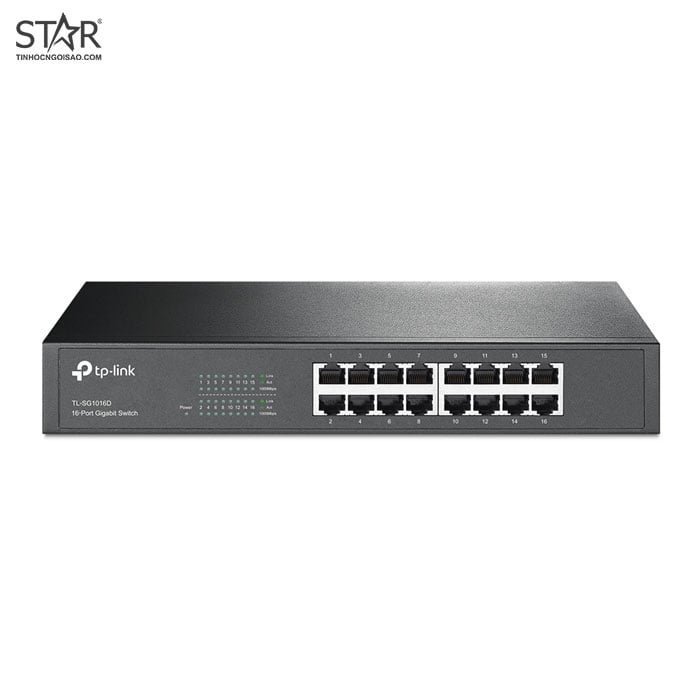- 16 cổng Gigabit mạnh mẽ: Kết nối tối đa 16 thiết bị mạng với tốc độ truyền dữ liệu lên đến 10/100/1000 Mbps.