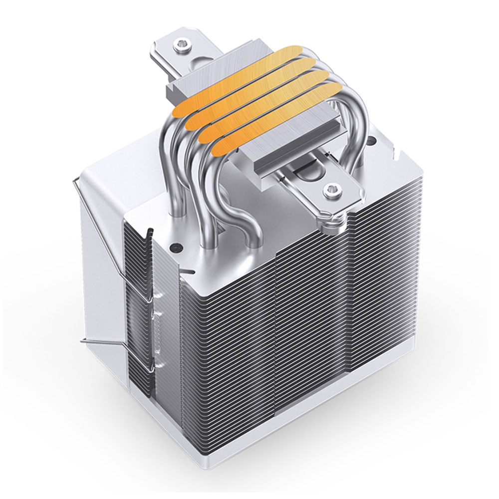 Tản nhiệt khí Jonsbo CR-1000 EVO RGB White sở hữu 4 ống đồng dẫn nhiệt được thiết kế tối ưu, giúp truyền nhiệt từ CPU đến các cánh quạt một cách hiệu quả. Quạt được trang bị vòng bi thủy lực, giúp hoạt động êm ái, giảm thiểu tiếng ồn, mang đến trải nghiệm sử dụng thoải mái.