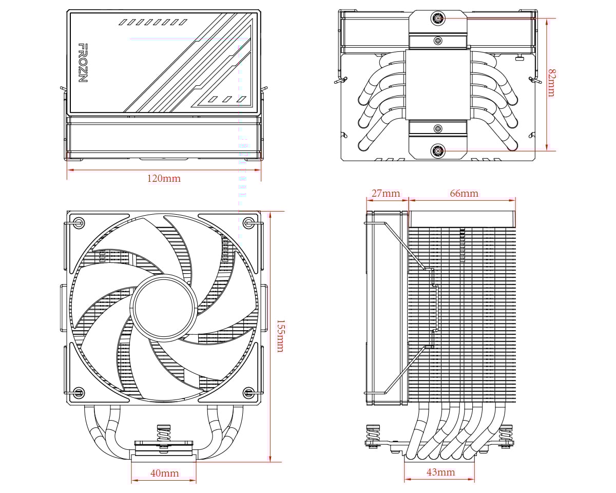 - Vật liệu tản nhiệt: 6×Ф6mm Heatpipe + Copper Base + Aluminum Fin – Đảm bảo truyền nhiệt nhanh chóng và hiệu quả.