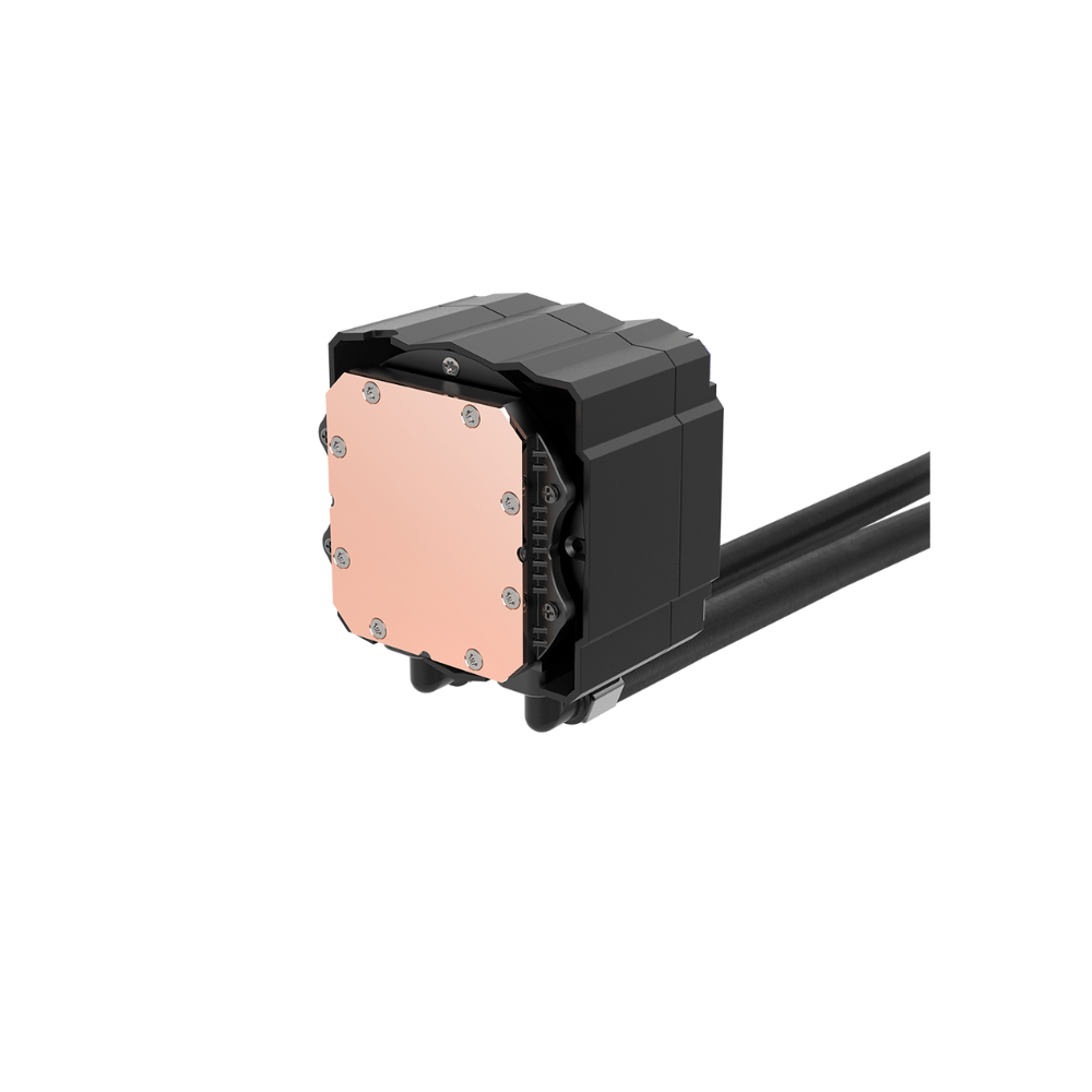 Bơm sử dụng vật liệu đồng kết hợp với tốc độ quay tối đa 2500 RPM, cùng ba quạt 120mm có khả năng đạt lưu lượng gió 84.58 CFM và áp suất tĩnh 3.2 mm-H2O – đảm bảo hiệu quả tản nhiệt cực cao ngay cả khi hoạt động ở công suất lớn.