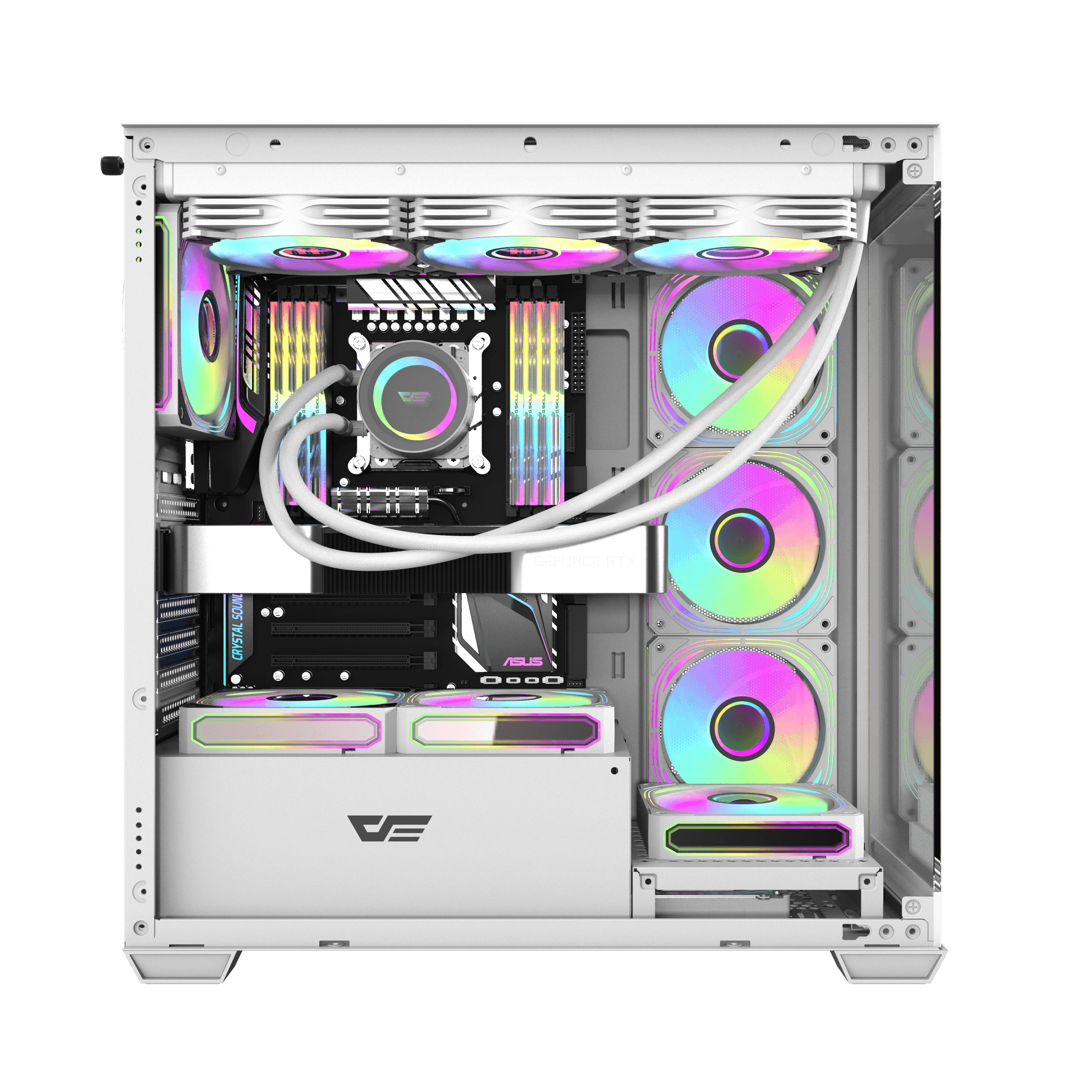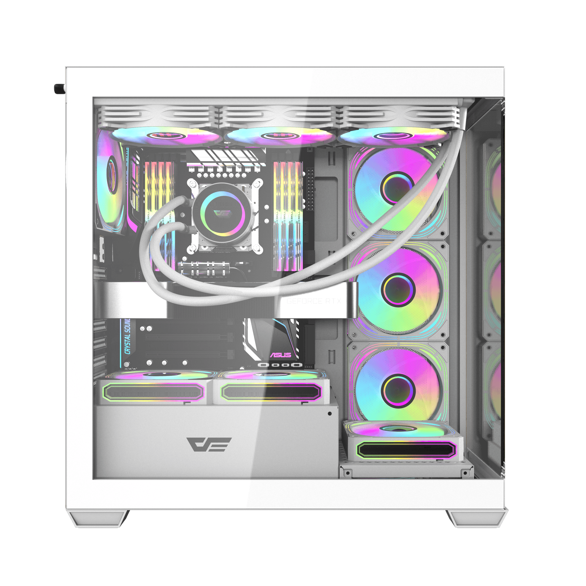 Darkflash DS900W mang đến góc nhìn rộng mở nhờ mặt kính cường lực, không có cột A che chắn, giúp bạn phô diễn trọn vẹn hệ thống PC cao cấp của mình.