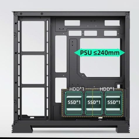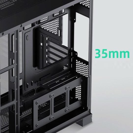Khoang lắp PSU hỗ trợ nguồn dài đến 240mm cùng hệ thống khe mở rộng PCI-E giúp việc nâng cấp hệ thống trở nên thuận tiện hơn trong tương lai. Khả năng tương thích cao giúp người dùng dễ dàng xây dựng một cấu hình mạnh mẽ và linh hoạt theo thời gian.